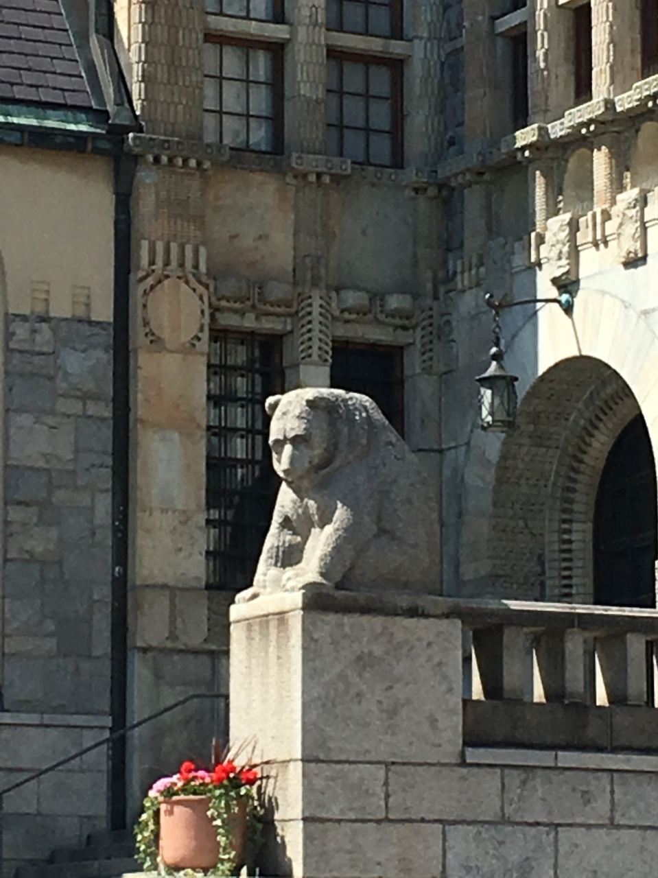 トラム4,10のKansallismuseo降りて目の前です。博物館というよりも教会みたいな外観でした。入口にクマの像があります。館内は時代やテーマに沿ってフィンランドの歴史が分かるようになっていました。