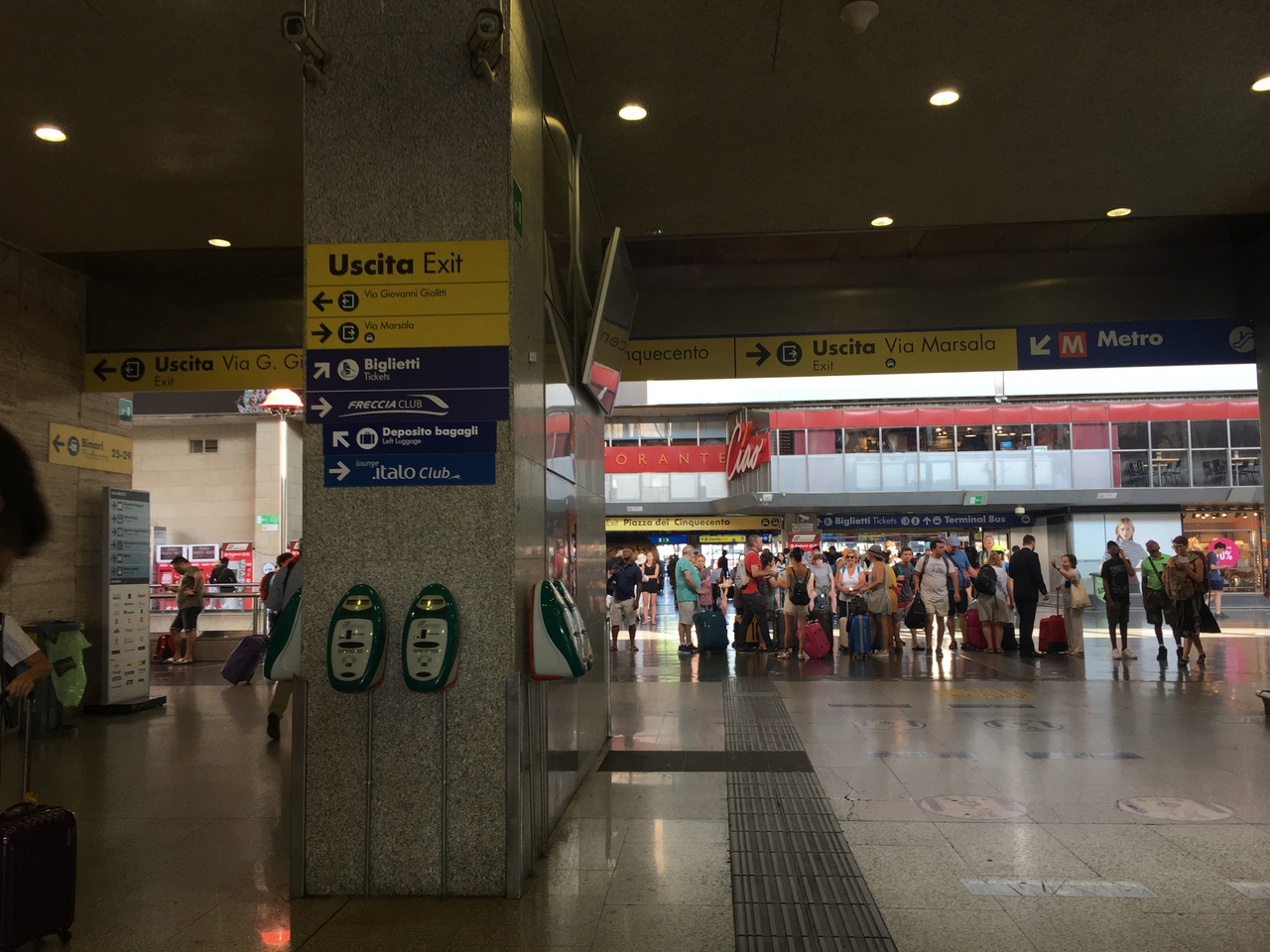 見れば乗り場には兵士の姿が(ローマ各地の交通機関や主要観光地には必ずいらっしゃいました)。というわけで2019年現在は全然問題なく乗れるかと思います。ホームが薄暗めなので、他の乗客と一緒に乗ると安心感アップです。その辺はやはり自衛で!