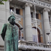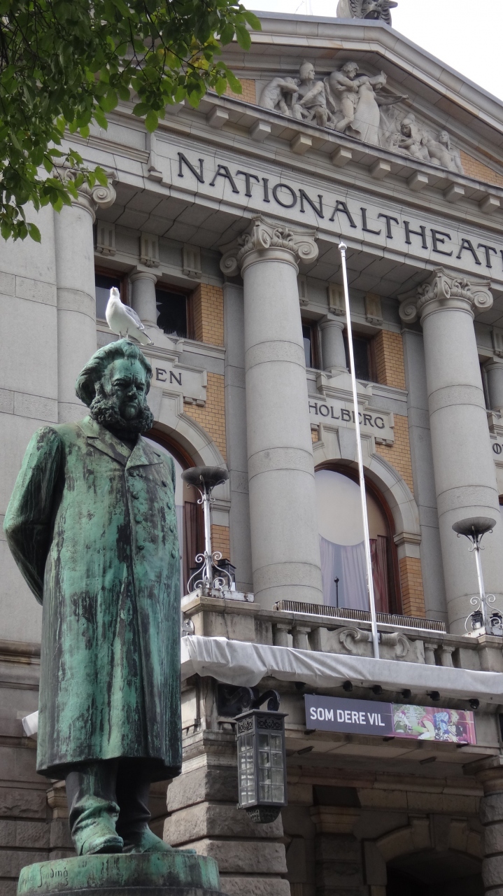 カールヨハン通りを歩いていると2体の人物像が左右に立っている威厳のある建築が建っていたので調べてみると国立劇場だとわかりました。像はノルウェーが誇る近代演劇の父、イプセンとノルウェーの文学者ビョーンソンであることが判明!中へは入れず建築の素晴らしさを記憶に留めて、イプセン美術館へと移動しました。入館は予約が必要です。