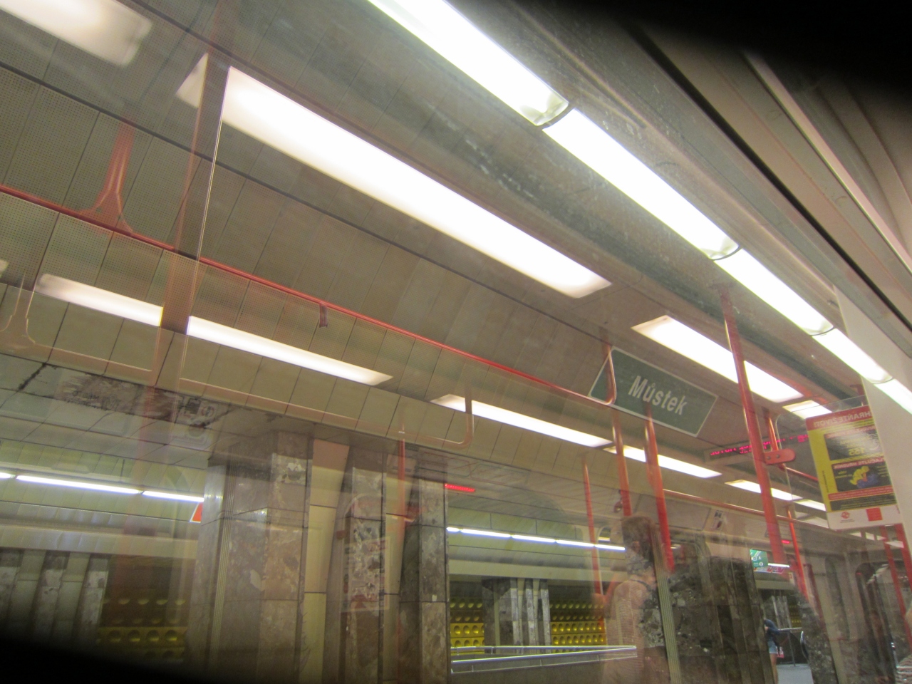 ナームニエスティレプリキ駅から地下鉄に乗ってプラハ城をめざしました。途中のムーステク駅で乗り換えです。路線によって色分けされています。色を見ながら移動するとスムーズに移動ができて、ひと安心です。マロストランカー駅で降りました。