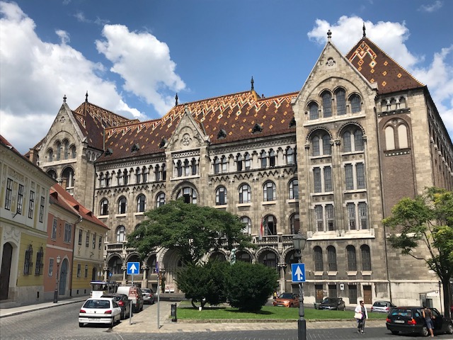 ブダペストの王宮の丘の漁夫の砦やマーチャーシュ教会、三位一体の像などの見所がたくさんある場所を通り過ぎて、そのまま奥へ奥へと進んで行くと、マーリア マグドルナ塔やウィーン門があります。ウィーン門の近くにとても立派な建物があったので調べてみると国立公文書館 でした。とても美しい建物で、とても国立公文書館 とは思えません。日によっては中に入れるようですが、行った日は中に入れず残念でした。