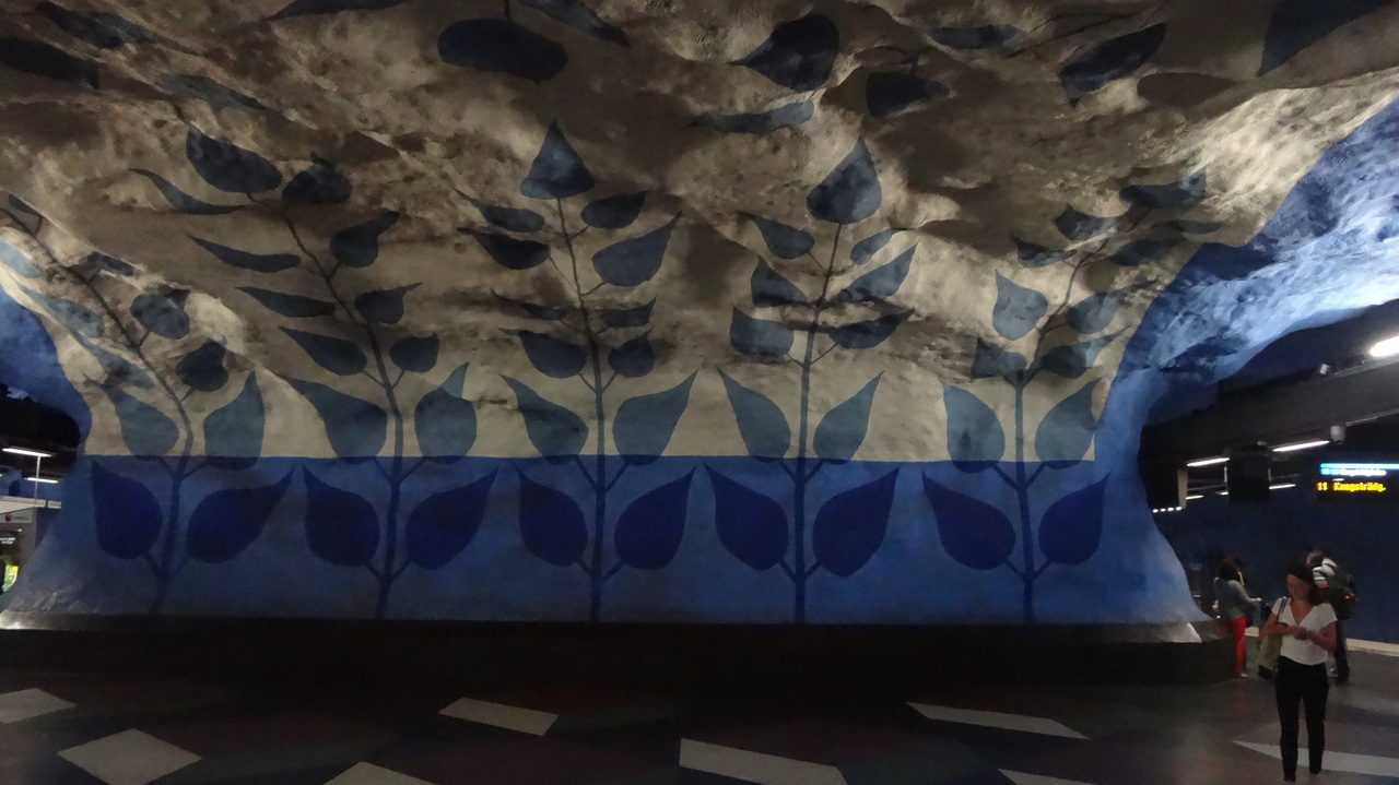ストックホルムの地下鉄は各駅が美術館のようなアートで表現されています。私は半日費やすて、主にブルーライトとレッドラインの駅を巡りました。