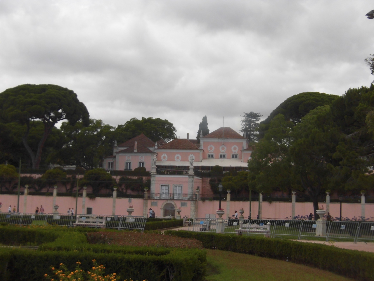 アフォンソ・デ・アルブケルケ広場から薄いピンク色のベレン宮殿が良く見えます。近くからだと、壁が高い、警備が厳重で良く見えないです。