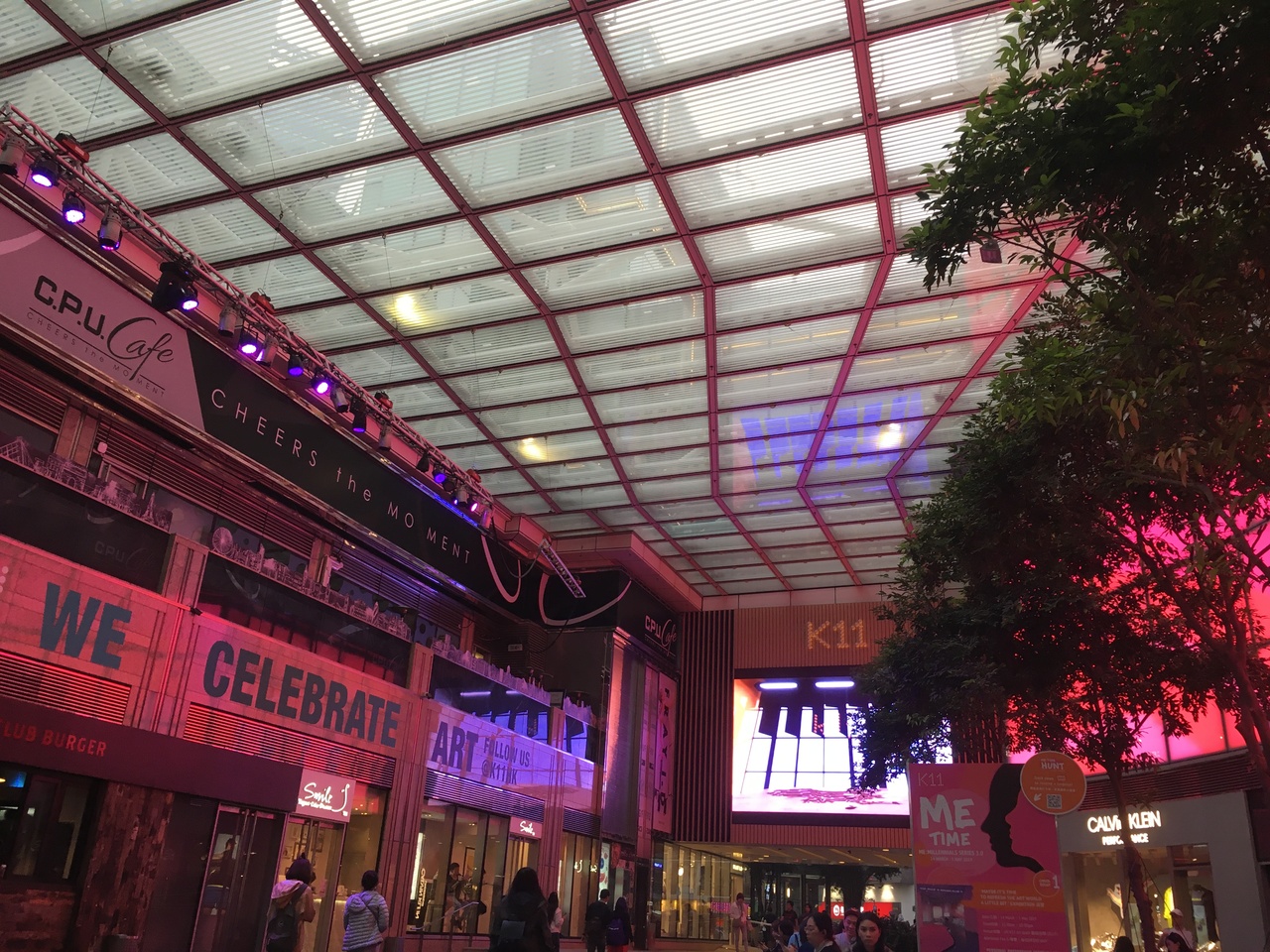 ピンクにライトアップされた建物はデザインも個性的。中に入っているブランドは若者向けが多かった印象。