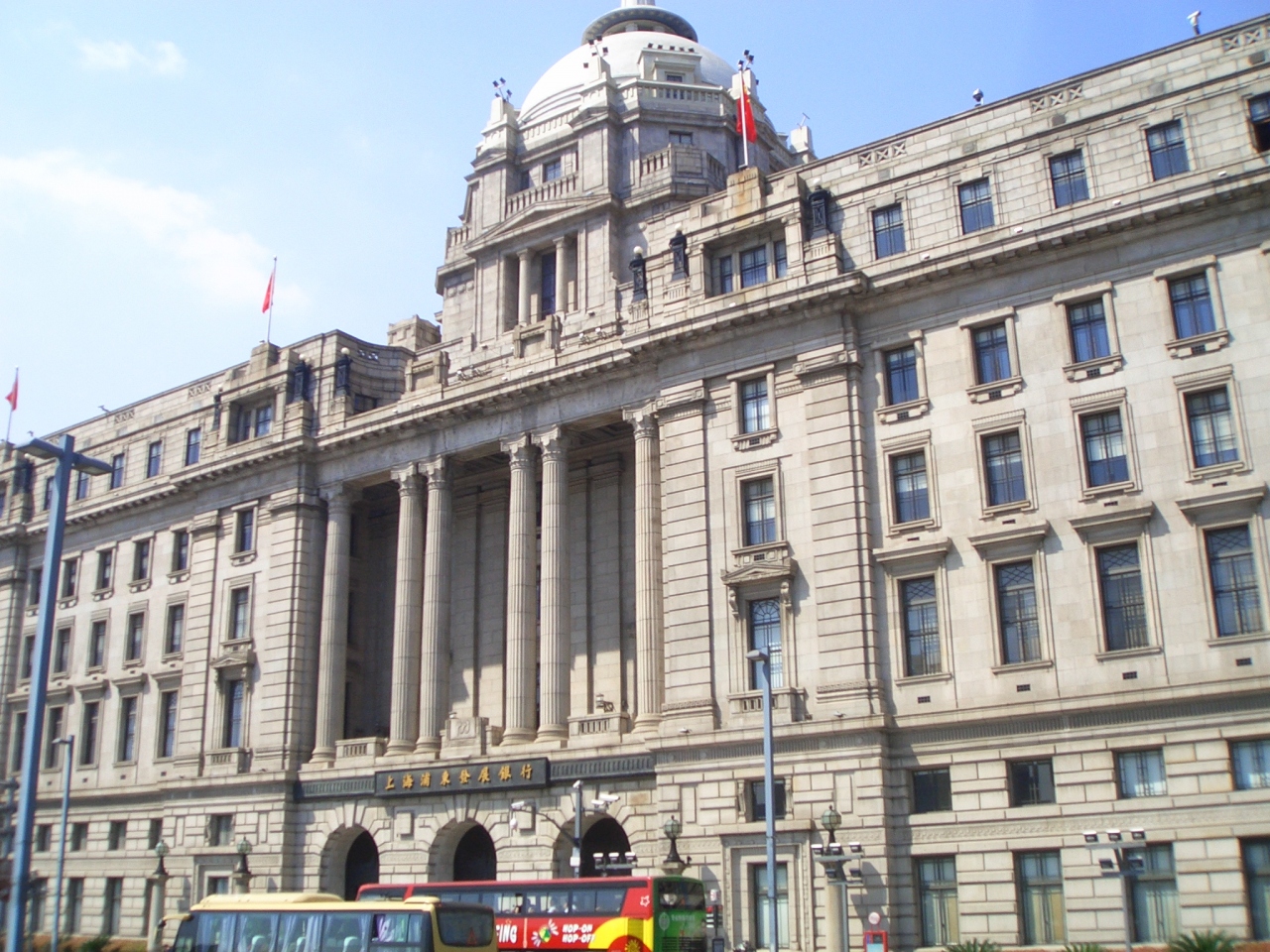 外灘の近代建築を見に行きました。上海市民英雄記念塔から順番に周り、上海浦東発展銀行は、南側、浦東へ向かう、渡し船の乗り場の近くにあります。