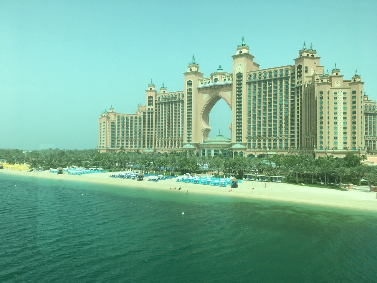 パ一ムジュメイラにモノレールで訪問しました。メトロとトラム、モノレールと多くの乗り継ぎが必要ですが、ジュメイラモノレールが終点に近づくと、全面に、アトランティスホテルが広がる様子は感動的でした。ぜひモノレールでの訪問をオススメします。