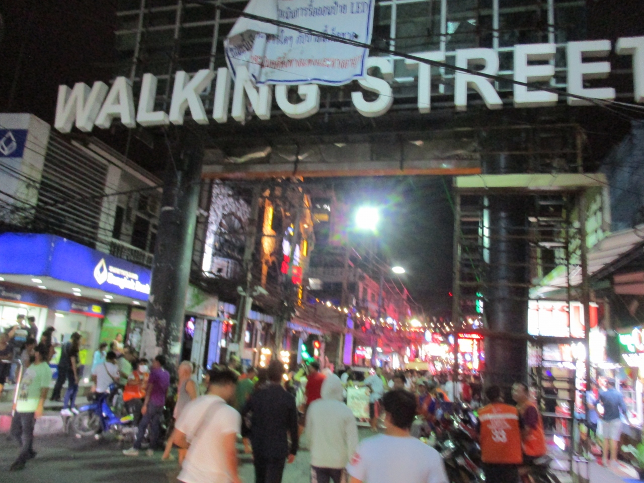 ソンテウに乗ってビーチロードを端まで行くとウォーキングストリートの入口に到達します。そこから先は歩くことになりますが左右に派手なネオンが続くストリートがあるパタヤ最大の歓楽街です。通りを見るだけの観光客からお店を探す客や呼び込みなどで通りはごった返しており、かなり賑やかな雰囲気になっていました。