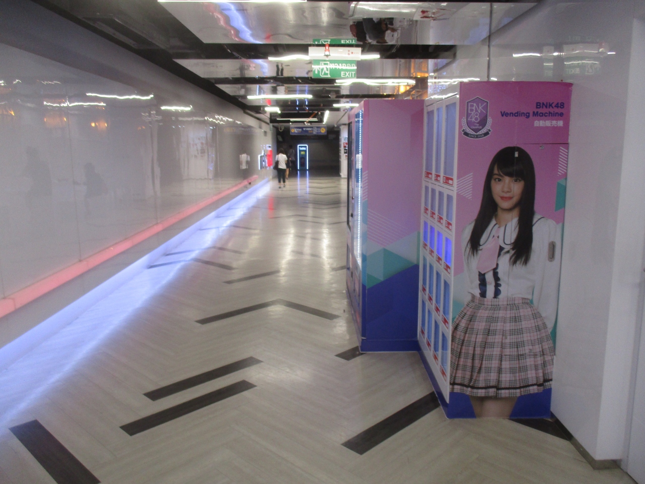 7月の滞在でスクンビット駅を利用しましたが、構内にBNK48のグッズを扱う自動販売機を見かけました。メンバーの大きい写真が付いたインパクトのある自販機でした。駅の通路の一角にあるのは珍しく、それだけニーズがあるということが分かりました。バンコクでは本家に負けないぐらいの人気を感じました。
