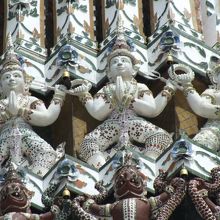 ワットアルンを支えている様に見える彫刻が沢山あります。
