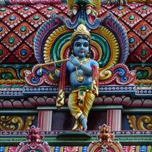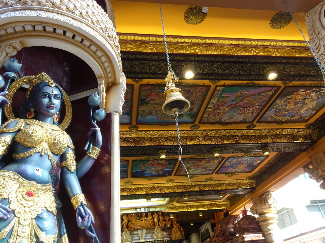 入口前で靴を脱いで中に入ると、外もそうですが、中の本堂も天井をはじめ、極彩色の艶やかな色が目に入ってきます。