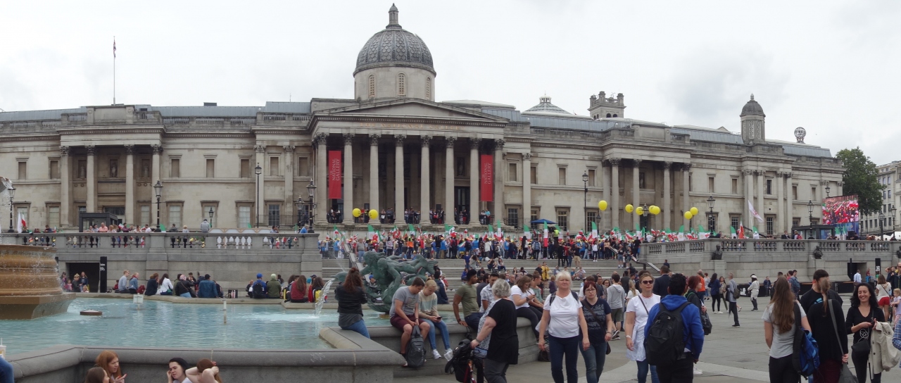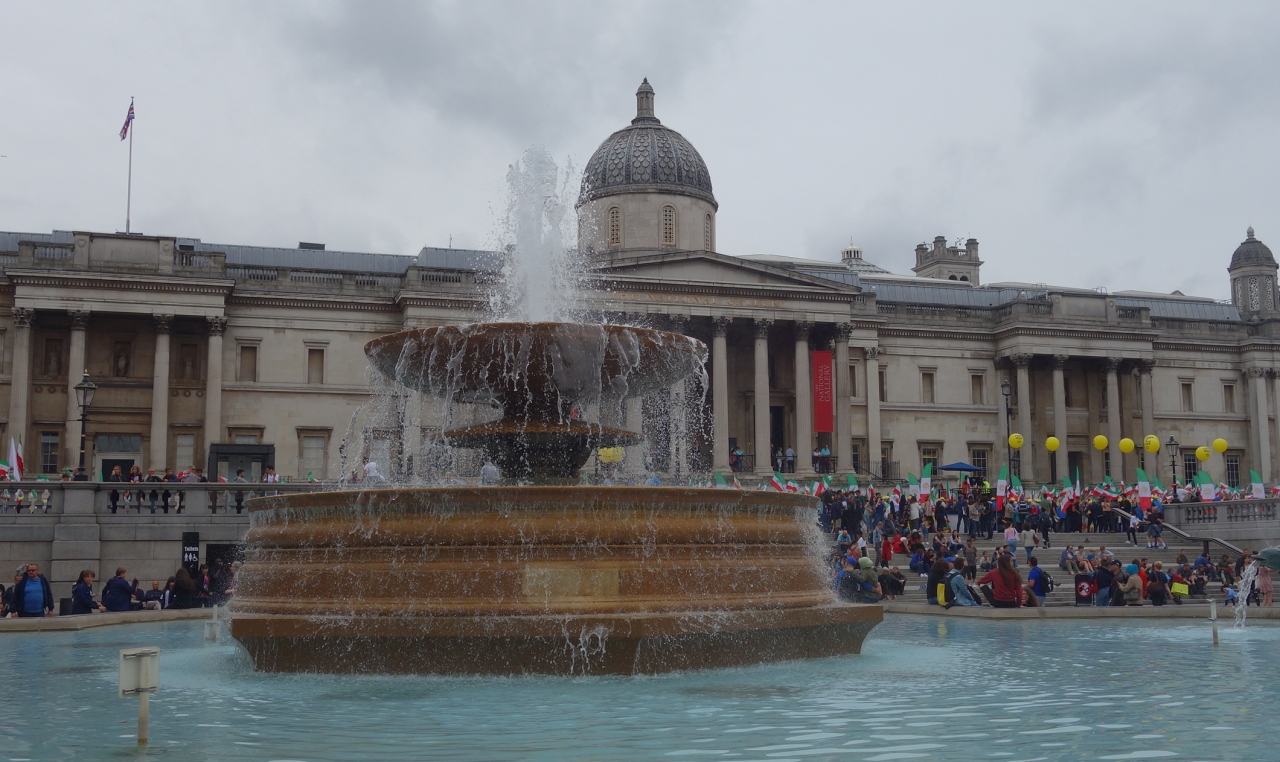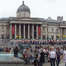 ナショナル・ギャラリーの正面にある公園です。ネルソン記念柱と噴水が中央にあります。ネルソン記念柱はライオンが守っています。このライオンが日本の三越も守っているのです。アクセントのある広い公園ですので,待ち合わせ場所として,また,時間つぶしの場所として,たくさんのひとがたむろしています。楽しいところです。