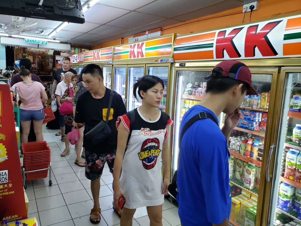 マレーシアにはセブンイレブンやファミマなんかも進出しているが、面白いのはこちらのコンビニ。ローカル感が漂い、プライベートブランドなんかも展開しているようです。ちょっと薄暗く、ひと昔前の日本の酒屋みたいな雰囲気です。