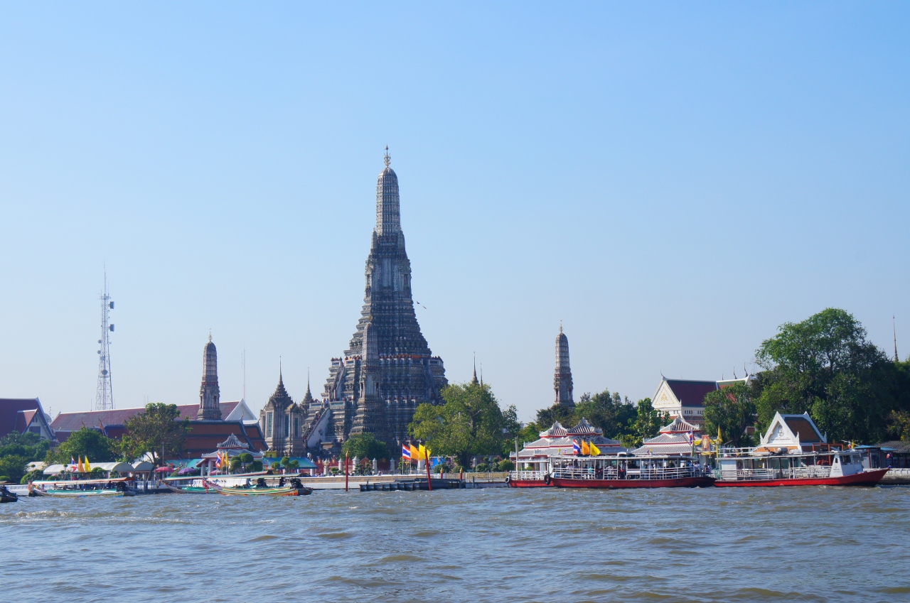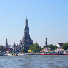 バンコクにある有名な三大寺院のひとつです。チャオプラヤ川沿いにあって、ワット・ポーを観光した後に、近くの渡し船乗り場から渡し船に乗って、チャオプラヤ川を渡ってアクセスしました。美しい仏塔が見どころでした。