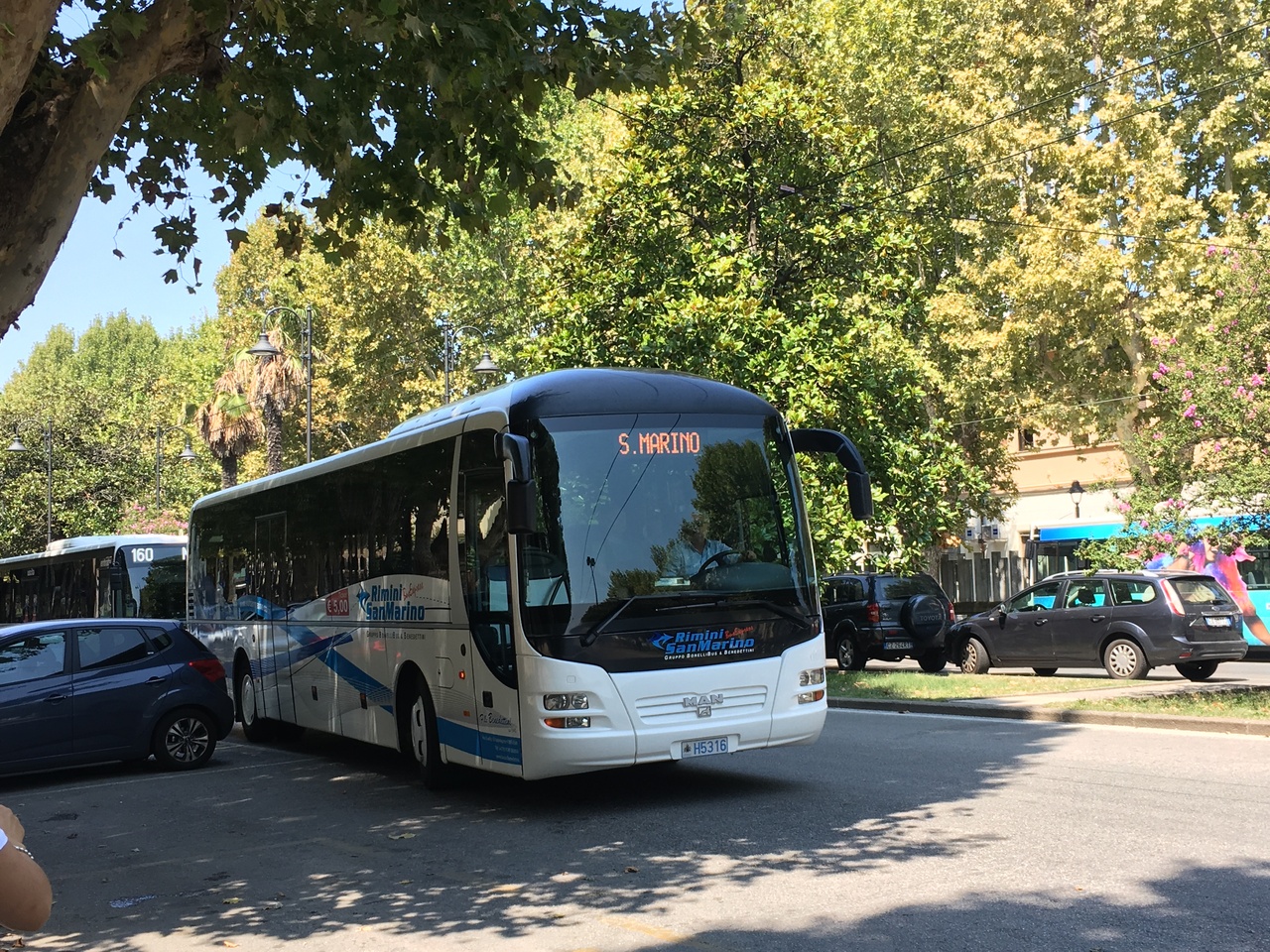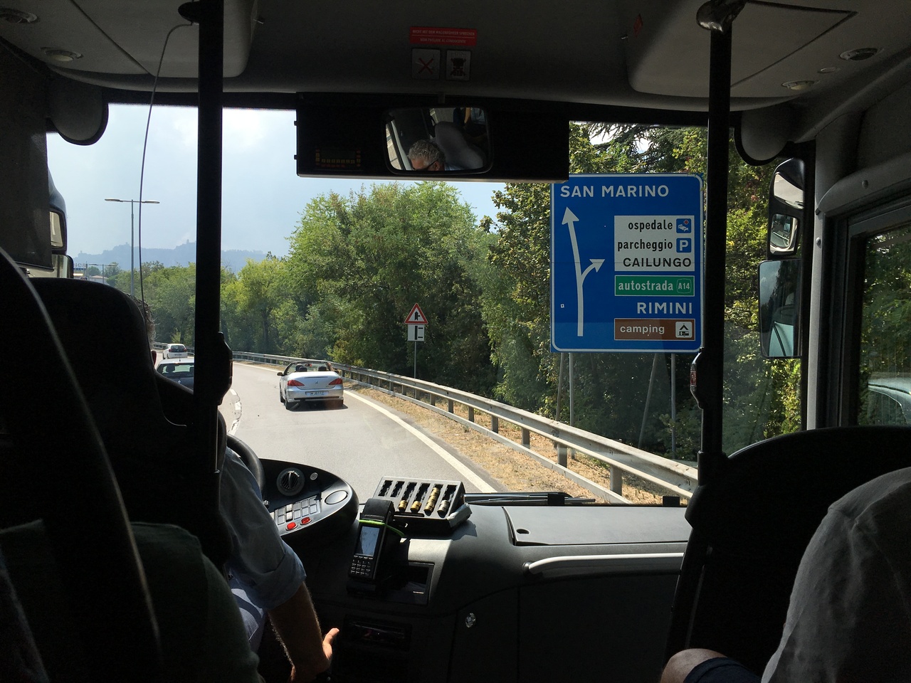 サンマリノへ行く公共交通機関は、リミニからの路線バスのみ。本数は夏場で12本ほど、秋冬になると半分ほどに減るので、時間はよく計算していったほうが良いです。