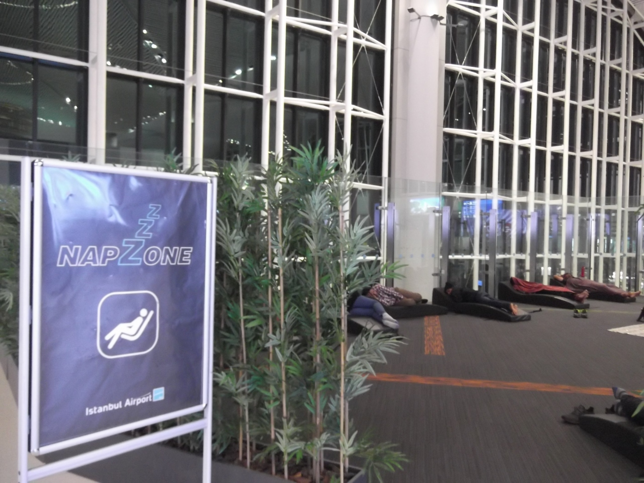 新空港のトランジットでトルコ航空無料市内ツアー参加。出国フロアーの右手へどんどん進みミーティングポイント4のホテルデスクカウンターで申し込み。途中、関係ないカウンターに聞くと嘘をつかれ、有料ツアーに勧誘されるので要注意。NAP(ごろ寝)スペースあり。運よく枕部分のあるマットレスをゲット、耳栓、アイマスクで仮眠。早朝フライトの場合、移動で1時間かかる市内とのバス便を懸念するなら空港泊も選択肢に。