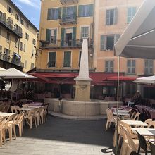 広場の周辺にはカフェやレストラン、お土産屋さんがあり