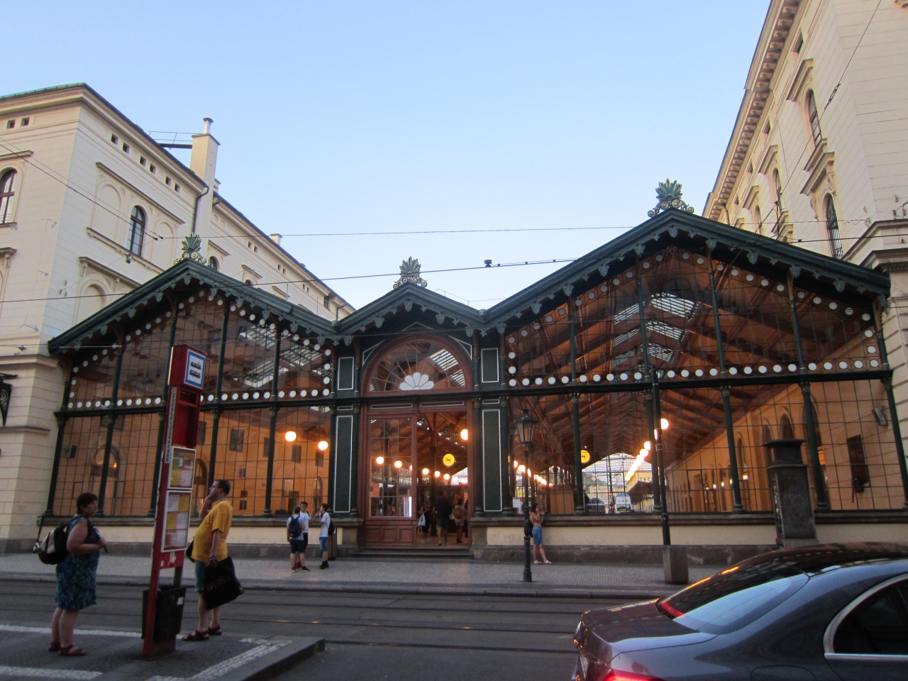 ガラス張りの壁と三角の3つの屋根が美しい駅舎でした。プラハ国内の鉄道の駅です。オレンジ色の明かりがともるプラットホームがガラス越しに見えて、美術館のような感じがしました。列車は利用しなかったのですが、この駅を見にきてよかったです。