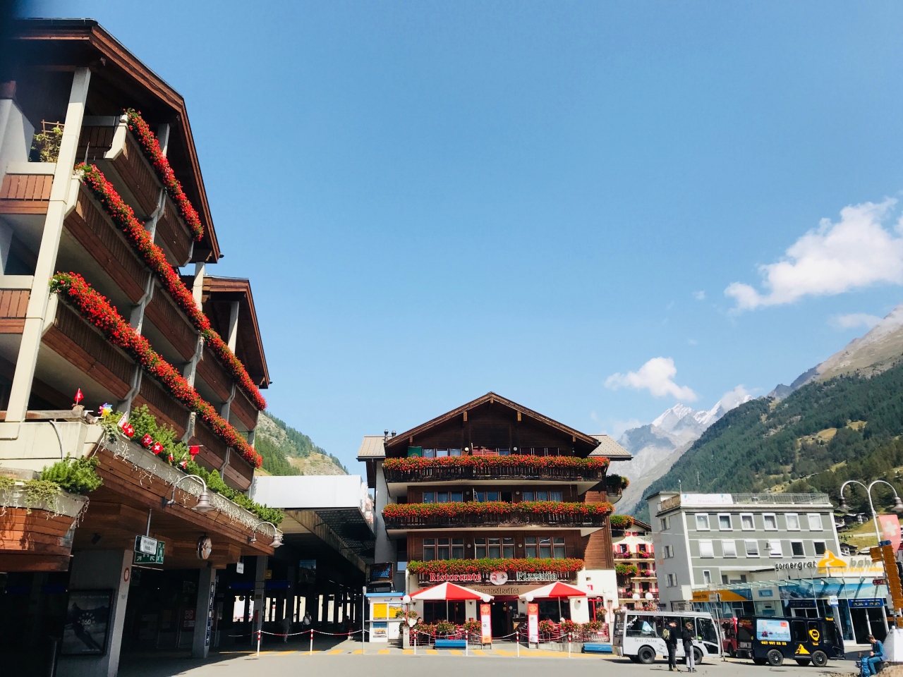 駅のホームから外に出て、マッターホルンが見えると、ツェルマットに来たー ! という感慨が一気にやってきます