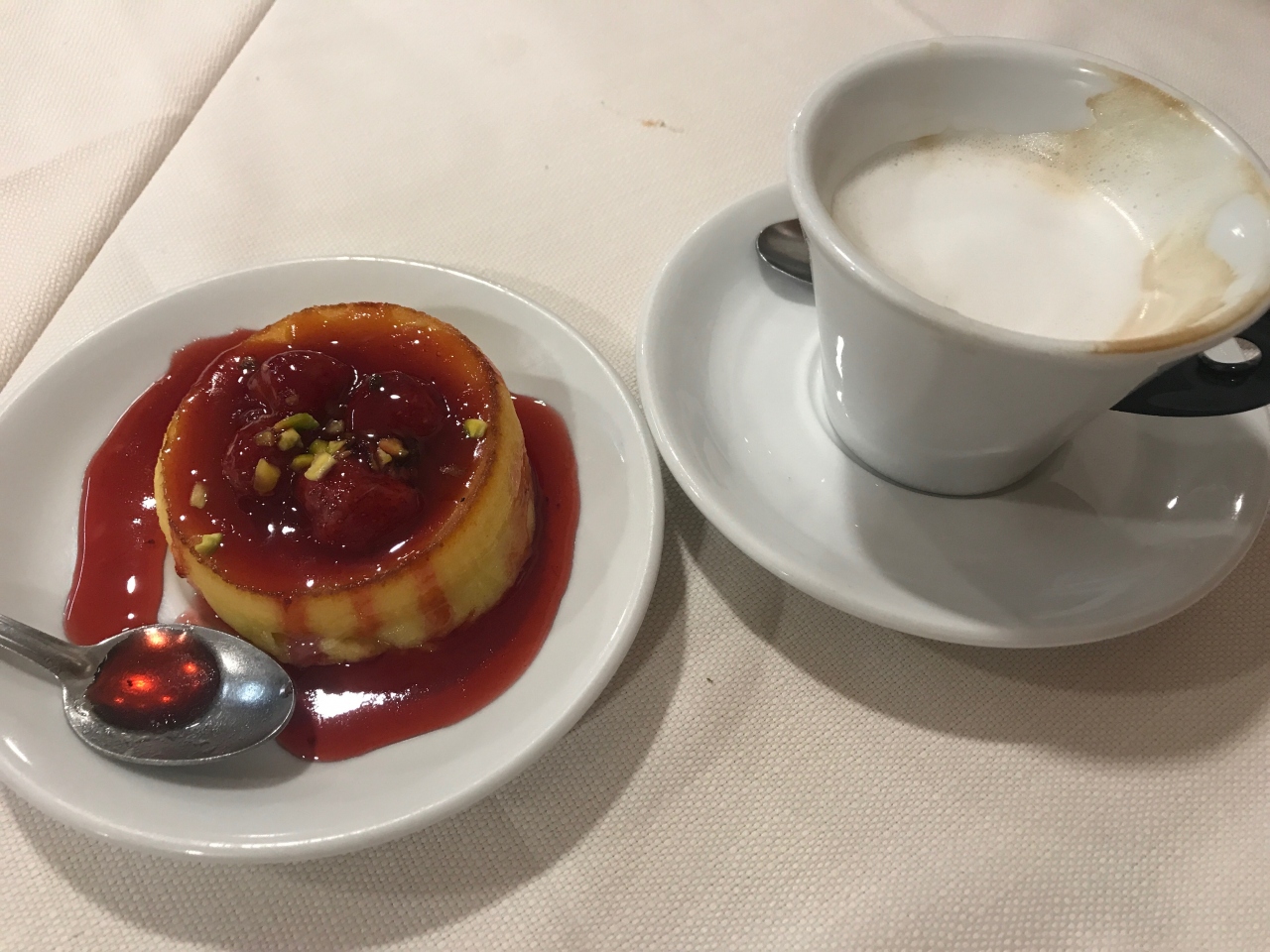 ミックスサラダ 4ユーロは非常にシンプル、ポルチーニ茸のリゾット (10E)はコクがあり美味しかった、ワインはカラフェで2dl (2E)、チーズケーキ(4E)、カプチーノ(2E )、ミネラルウォーター(1E)、テーブルチャージ2人(4E)で、トータル27ユーロはコスパ高かったです