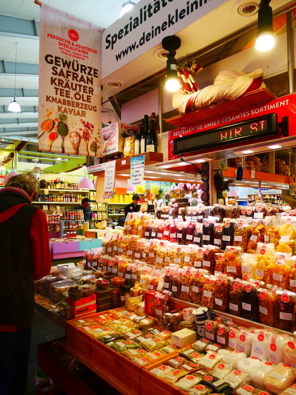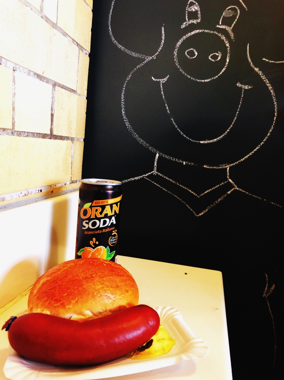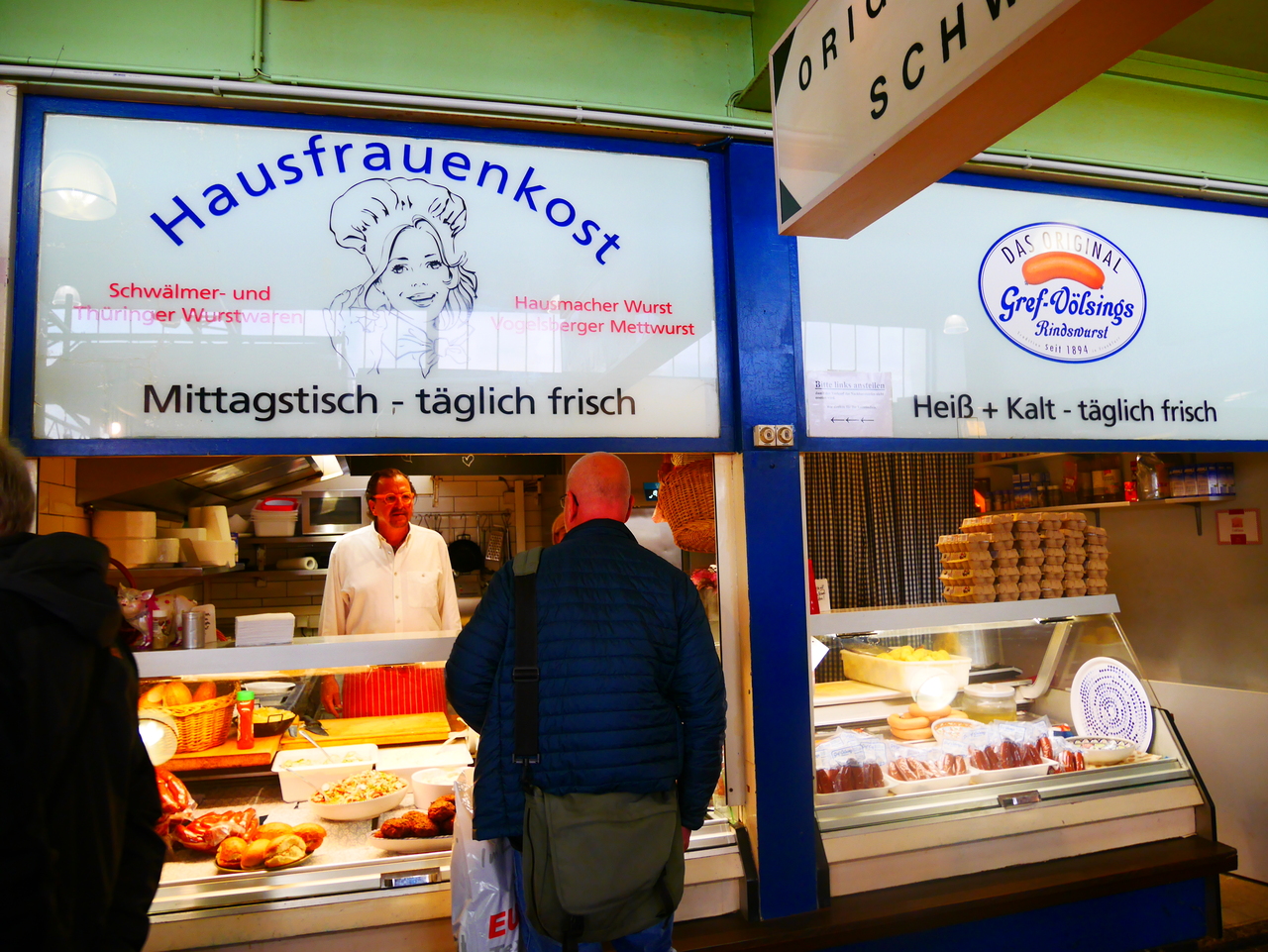 市場内には飲食店もあり、ここで食事を済ませることもできます。私は「Schreiber」という店の茹でソーセージをいただきました。地元民に人気だというそのソーセージは、塩気の効いたしっかりとした味わいでとても美味しかったです。ポークとビーフを選ぶ事が出来たので、ビーフにしました。ビーフの方が肉の味が濃厚なので、濃い味付に合うと思います。