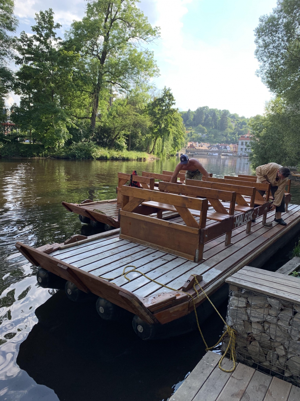 ボートの川下りがあったので、ラフティングみたいなゴムゴートだと思っていたら、貸出はあるけど、勝手に乗って川を下る感じでした。それは無謀なので、クラシカルなボート(筏みたいなのに、椅子の座席がついている)のツアーにしました。1時間ぐらいゆっくり、のんびりの船旅。町の周りを1周して、終点は出発したところと違うところでした。