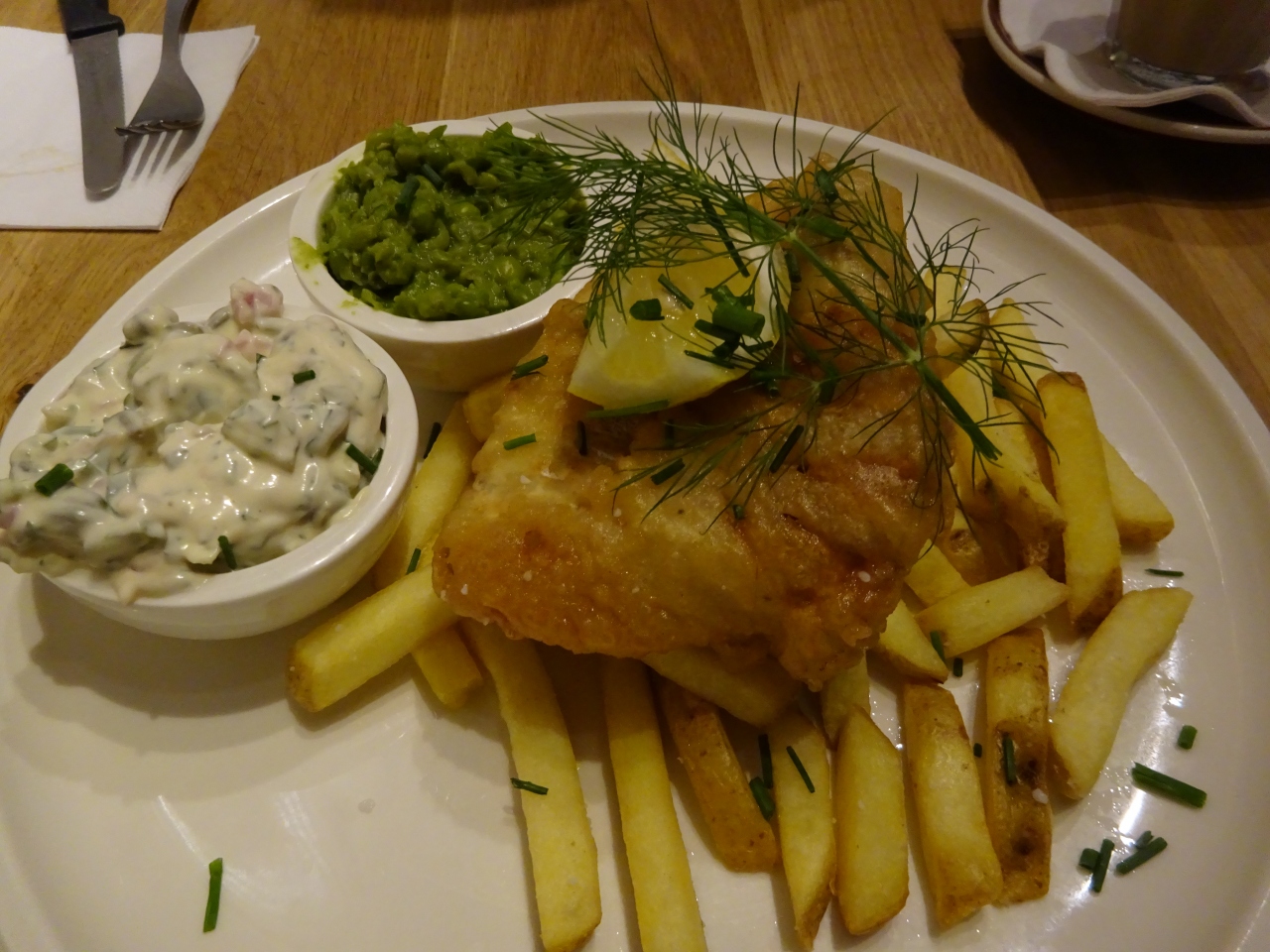 本がいっぱい置いてある図書館みたいなカフェでとても落ち着きます。席もたくさんあり好きなところを選べます。温かい料理メニューもあり、ボードに書かれていたフィッシュアンドチップスを注文。ボリュームがあり2人で分けて丁度良い量でした。