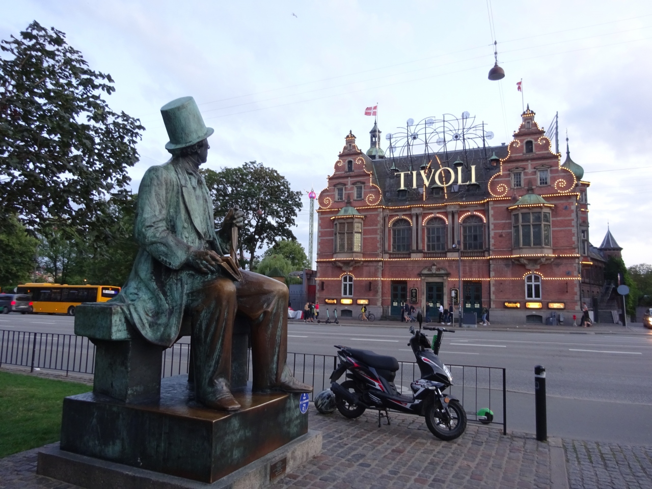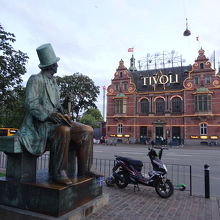 チボリ公園の隣にあり公園の方を見上げている像です。ここでは記念撮影をしている人が多かったです。チボリ公園の建物と一緒に写真を撮れば良い写真が撮れると思います。建物がライトアップしていて、きれいでした。