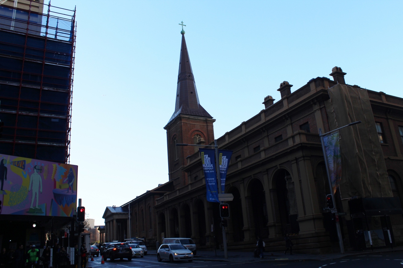 キングストリートにあり、教会周辺はシドニータワーやハイドパークなどの見所が多いです。