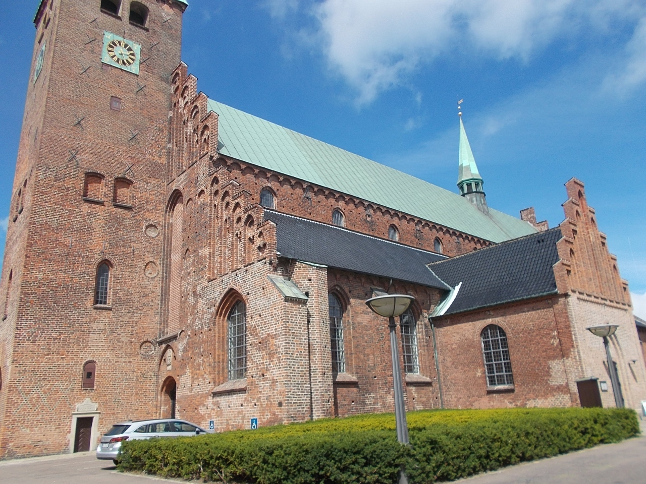 この聖オーライ教会は町の中心にあります。市庁舎の近くです。大きな教会で高い尖塔があります。外観は古く崩れかけているような印象です。内部がすごいのです。ルター派の教会でしょうが壁や柱に作られたものの装飾品が豪華ですばらしい作りです。内部も見る価値があります。