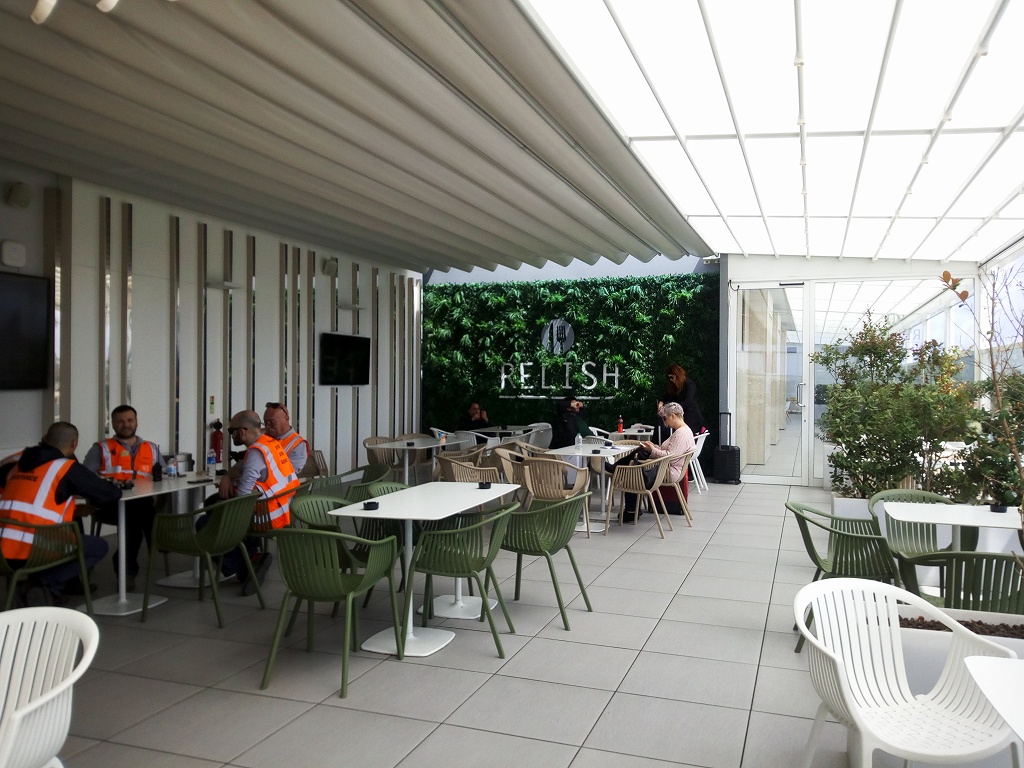 出発ロビーに気持ちの良いフリーのテラス席があります。カフェでコーヒーを注文しなくてもここに座ってくつろぐ事ができます。日当たりも良く眺めの良い場所。マルタを去るのを惜しみつつ最後にリラックスした時間を過ごすことが出来ました。
