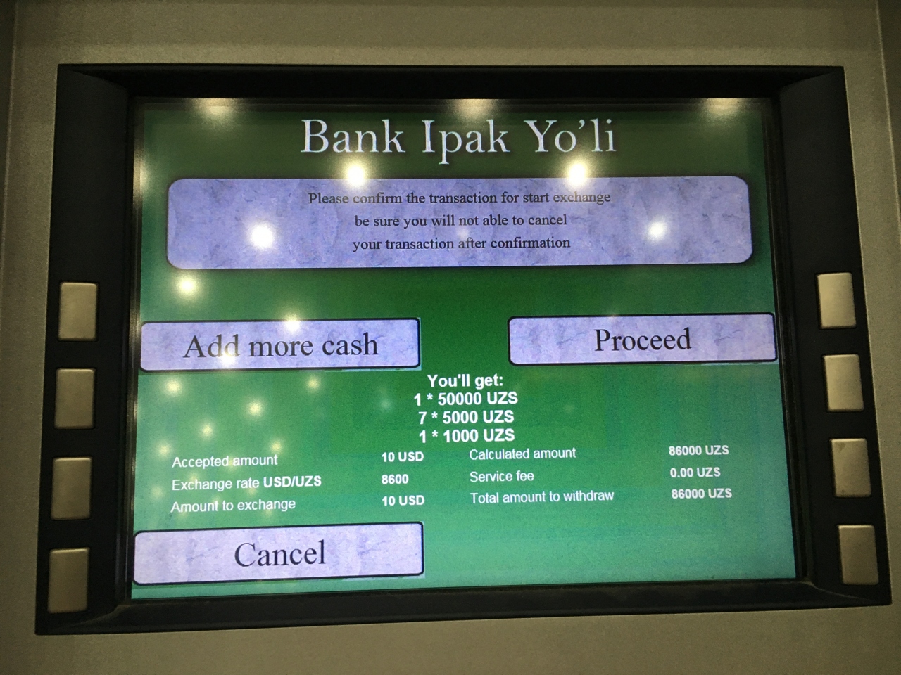 1ドル→8600スムでしたが、待たなくて良いから利用しました