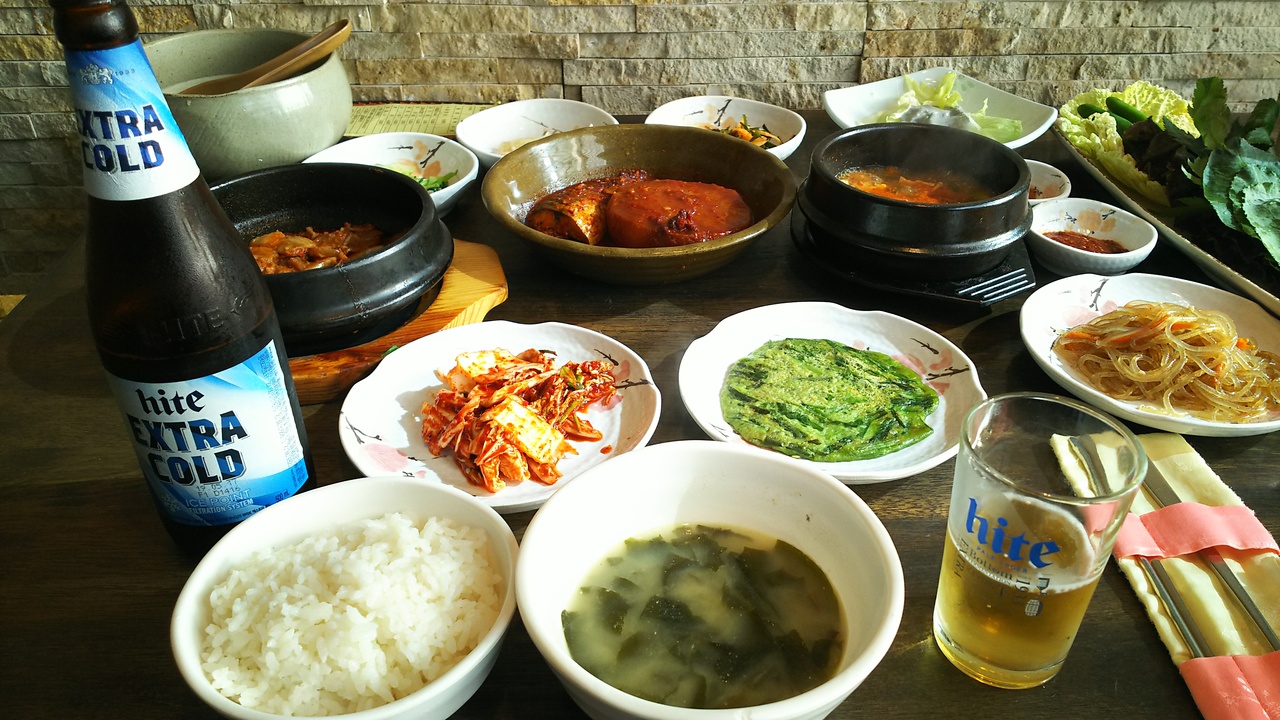 鯖の煮付けとテンジャンチゲと豚肉の甘辛煮みたいなものがめちゃめちゃ美味しかったです。チヂミもチャプチェも美味しかった。