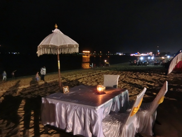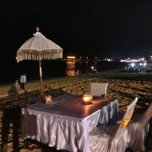 砂浜が広がって、夜でしたが、バリは湿気が少なくて気持ちよいです。