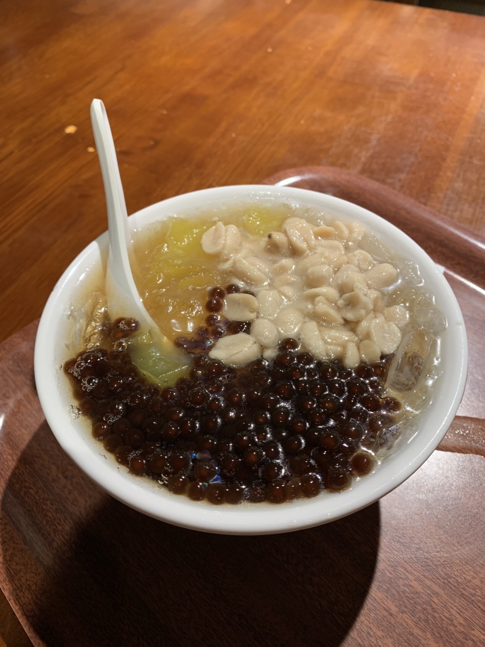 メニューはある程度ベースがあり それにトッピングをするには追加料金がかかるシステムらしい。シロップの味はほのかに甘めで人工的ではないのが良かったです。わらび餅が黄色なのでちょっとビックリしましたが、もちもちが好きな私には何でも満足です