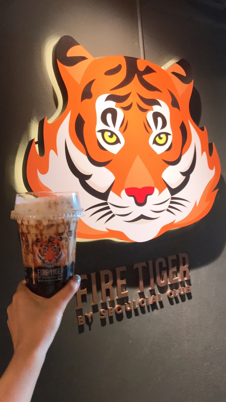 サイアムセンター内には、いろいろな店が入っていて、日本のブランドや、韓国のブランドなど、世界中の店が入っています。今回の目的は、虎のタピオカの店です。注文すると虎の口からタピオカを出してくれます。タピオカがキャラメルのような味で、ナタデココやゼリーも入っていて美味しかった!