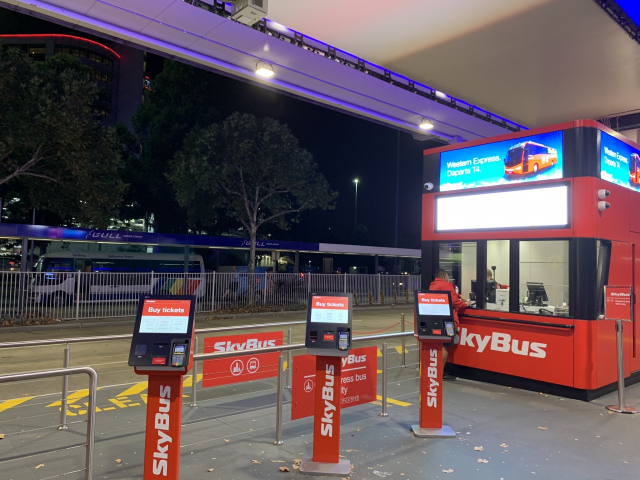 空港とメルボルンの都心を結ぶルートはタクシーとこのスカイバスのほぼ二択。スカイバスは事前にネットで購入しておくと、空港の券売所や自動券売機で買うより割安です。往復割引もあり。乗車時刻を指定する必要もないので、日付さえ決まっていれば先に買っておきましょう。二階建てで、車内では無料のWi-Fiが飛んでいるものの、やや不安定。しかも途切れるたびに膨大な数の広告を見せられます。