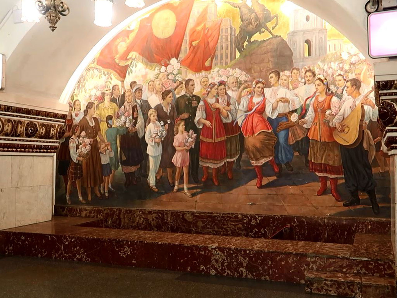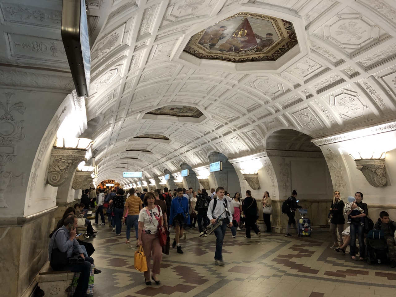 内部の装飾、壁画はモスクワの地下鉄の中でも特に