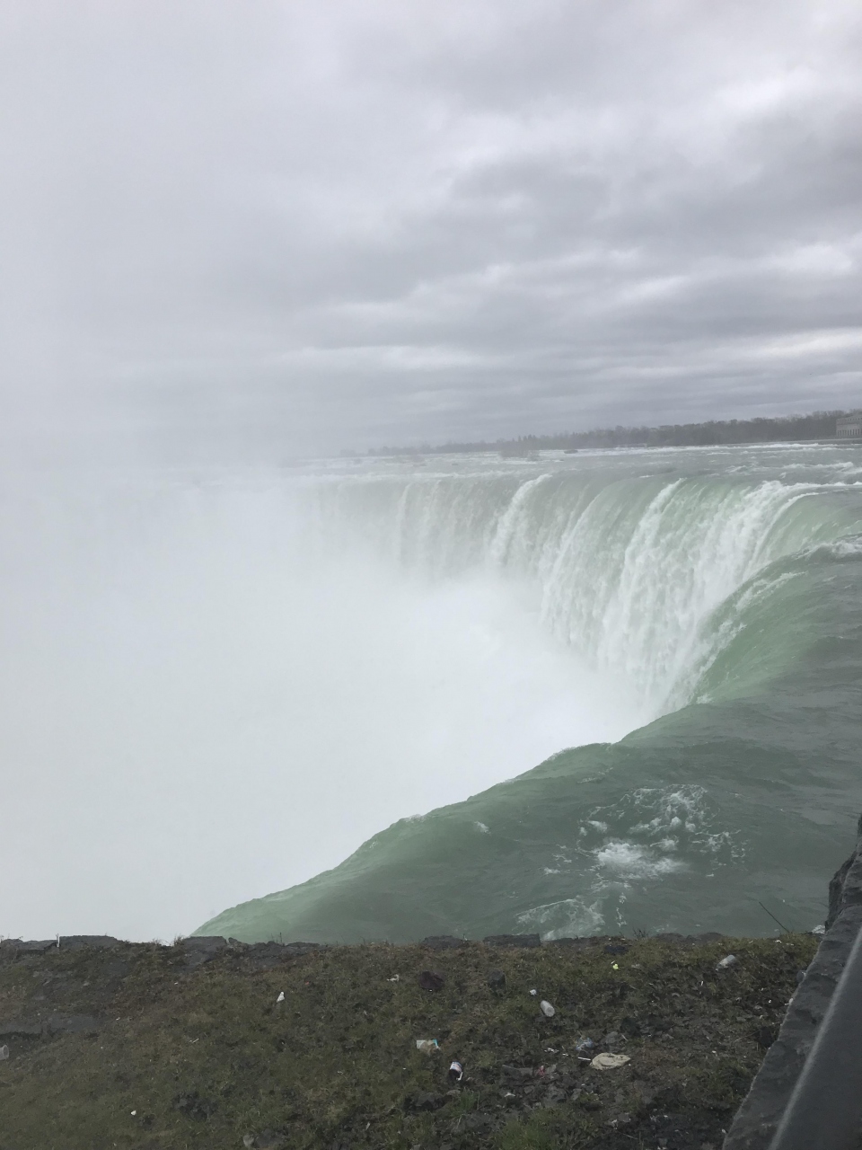豊富な水がカナダ滝に吸い込まれるように落下するところを間近で見られる