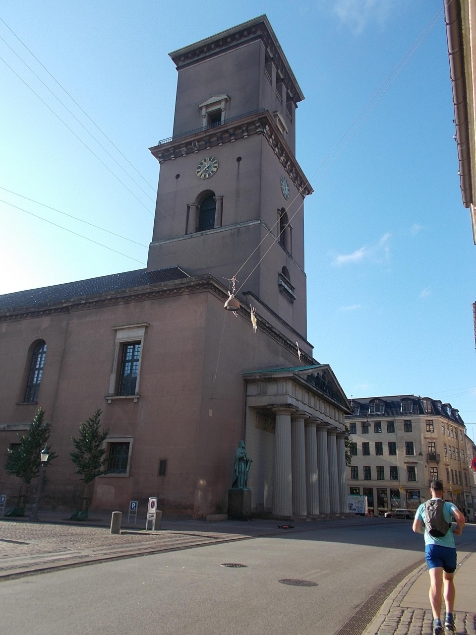 この聖母教会はコペンハーゲン大学の通りを挟んで反対側にあります。旧市街地で円塔から南側にあります。この教会は12世紀末に建設されました。古い教会の一つです。入り口はローマ風の円柱を配置し重厚な四角い塔をもっています。内部の祭壇も特徴的な作りです。教会という印象よりも聖堂的です。