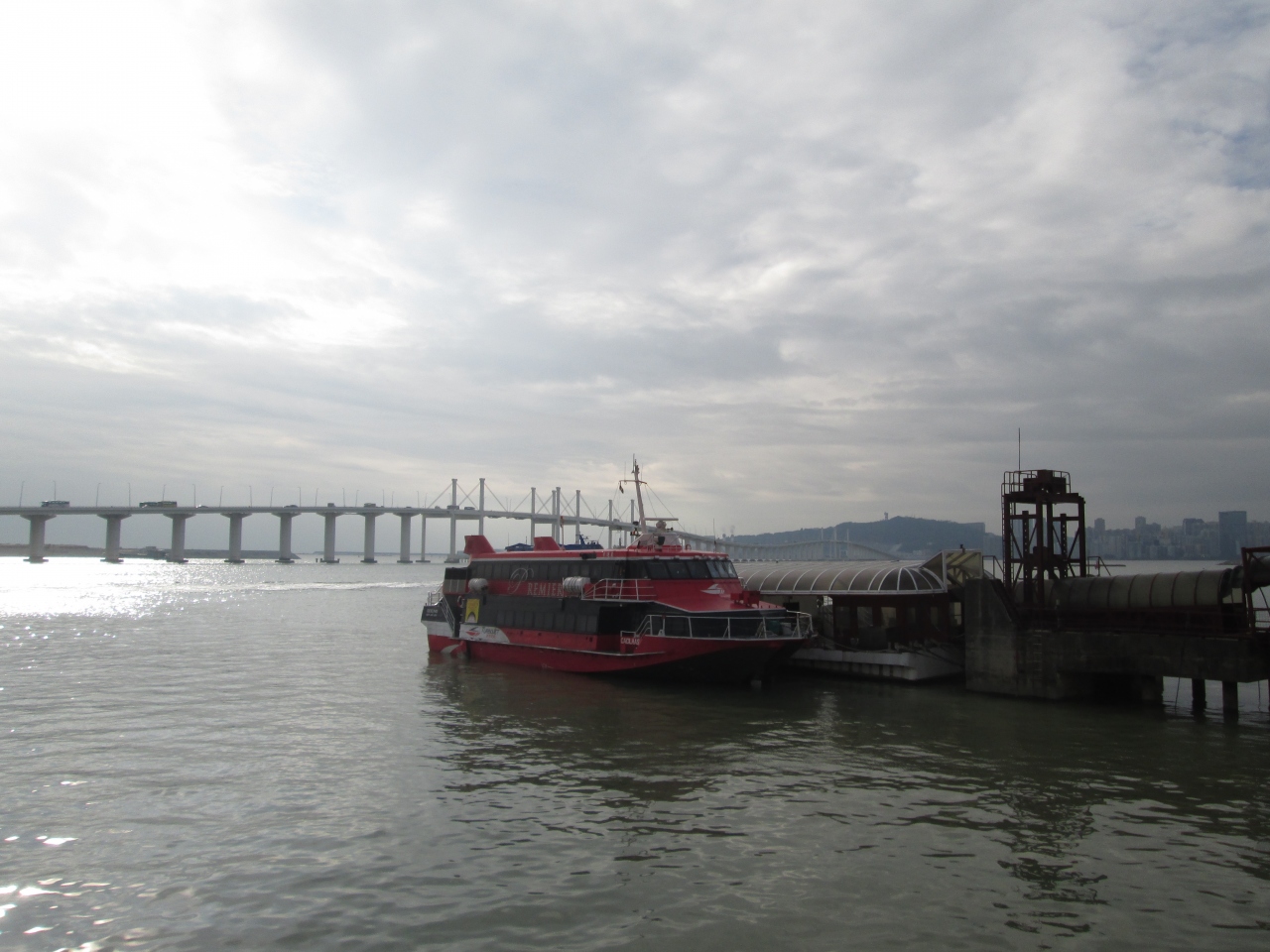 マカオ半島とタイパの行き来で何度が渡りました。夕日が沈む時間に通り太平洋側の海が夕日に染まり絶景でした。朝の空は意外ときれいで景色がすばらしかったです。時間と体力があれば徒歩でも渡れますので、天気がいい日は景色を楽しみに足を延ばしてもいいかなと思います。
