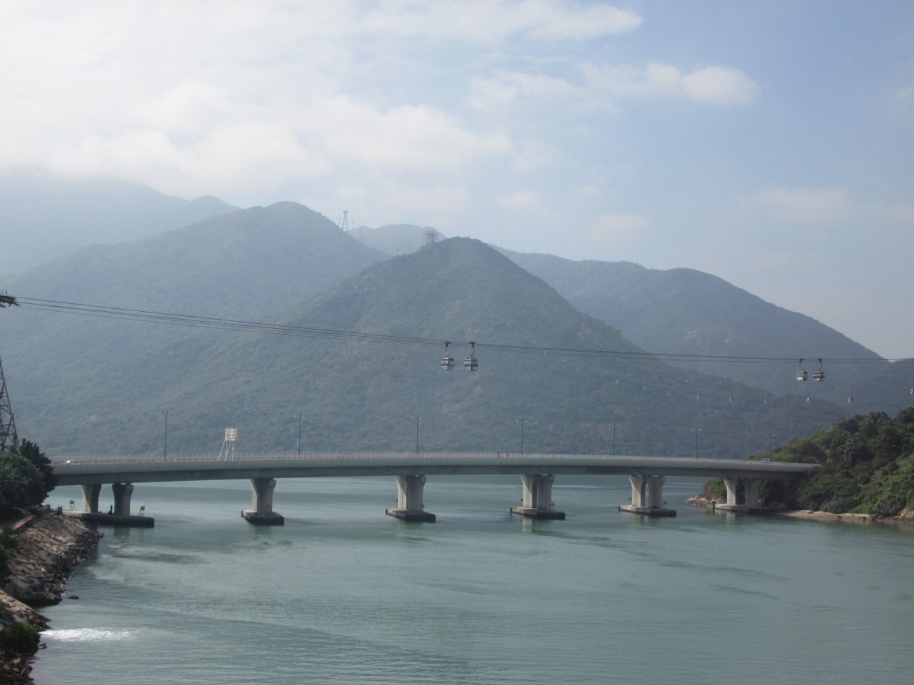 360度見渡せる8人乗りのゴンドラで30分程度かけて地上駅から山頂まで行きます。途中、香港国際空港が全体的に見渡せて、周囲の海・山などが一望できて良かった。山頂には立派な大仏様がいて香港観光の定番であり、見どころのひとつだと思います。