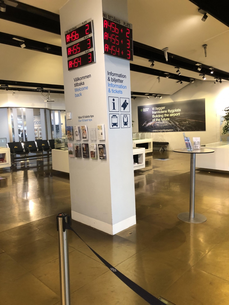 ターミナル5の到着ロビー階にあるインフォメーションです。アーランダ―エクスプレス乗り場へのエレベーターの隣です。