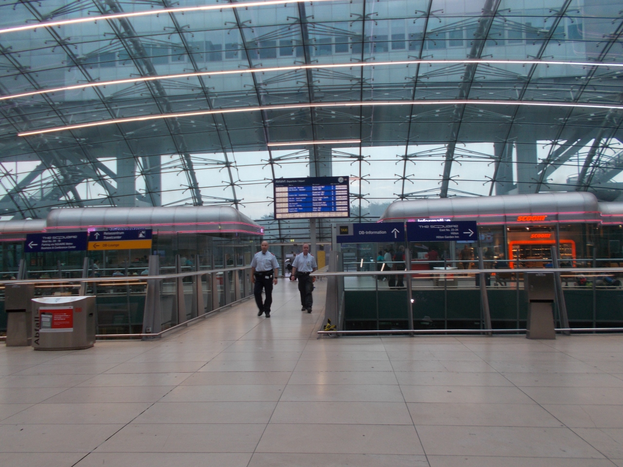 このフランクフルト空港長距離列車駅はフランクフルト国際空港から連絡通路でつながっています。初めてなので案内板や人に聞きながら15分程度かかりました。ここはドイツ国鉄の長距離列車のホームがあります。ファンクフルト中央駅にはSバーンもありますがケルンなどのICEの列車が頻繁にでています。便利でした。