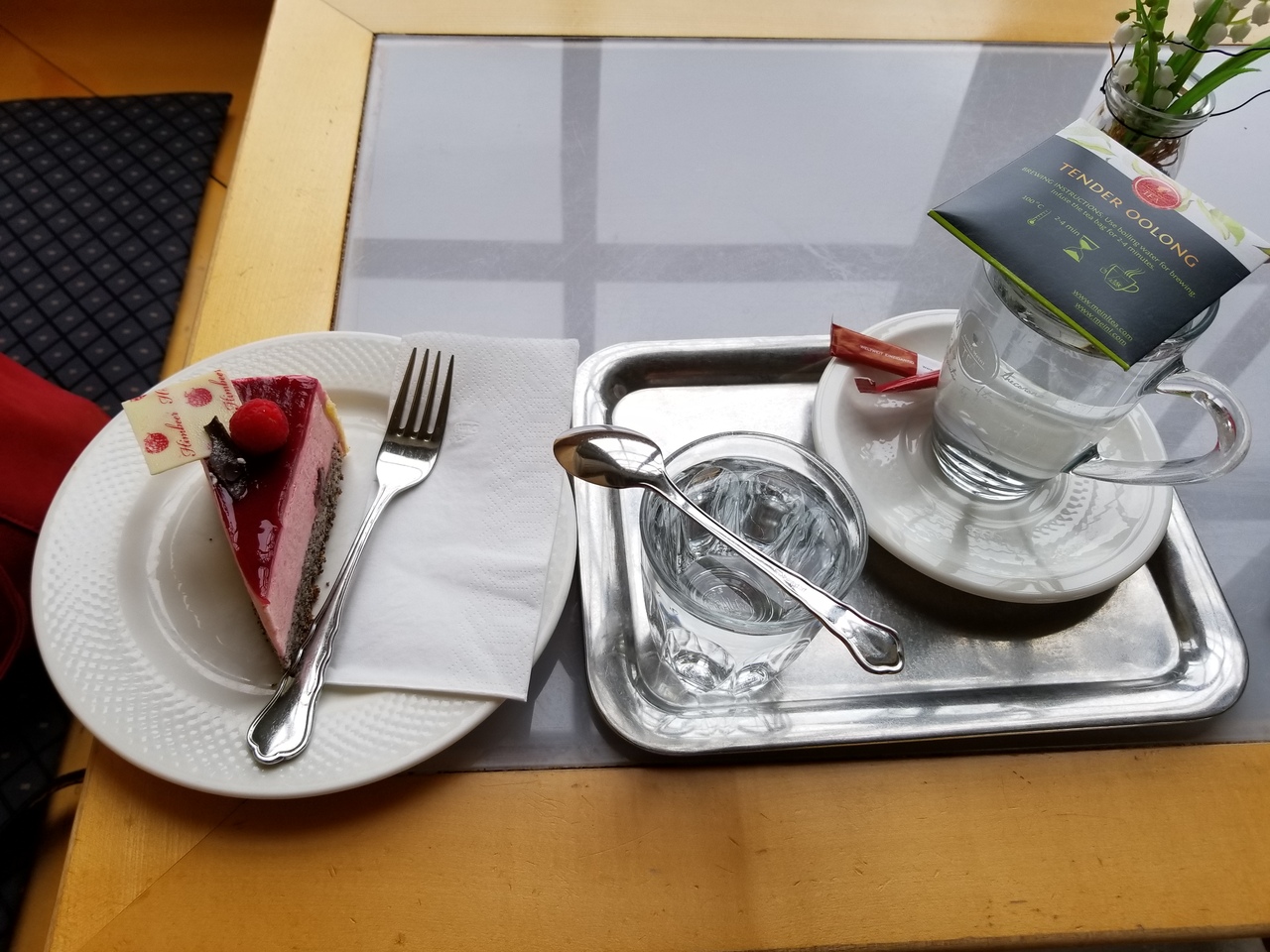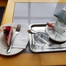 ケーキと烏龍茶を注文した。お湯と烏龍茶のパックを渡された。お湯の温度が低すぎで上手く烏龍茶が出来ず味が薄かった。