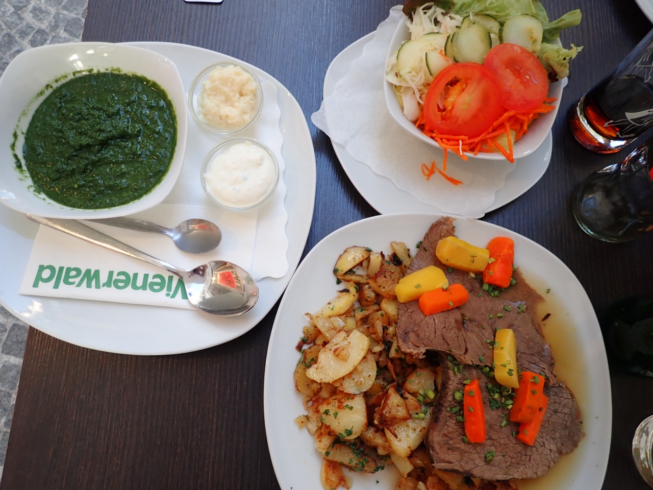 ホテルの近くだったので、夕食にテラス席を利用しました。チェーン店のようで、他の所でも見かけました。ターフェルシュピッツとサラダを注文しました。ターフェルシュピッツ(牛肉の煮込み)はさっぱりしていて美味しかったです。