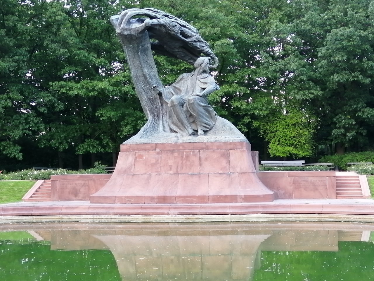 平日の夕方に訪れたので人は少なく静かで、近くでショパン像を見ることができました。