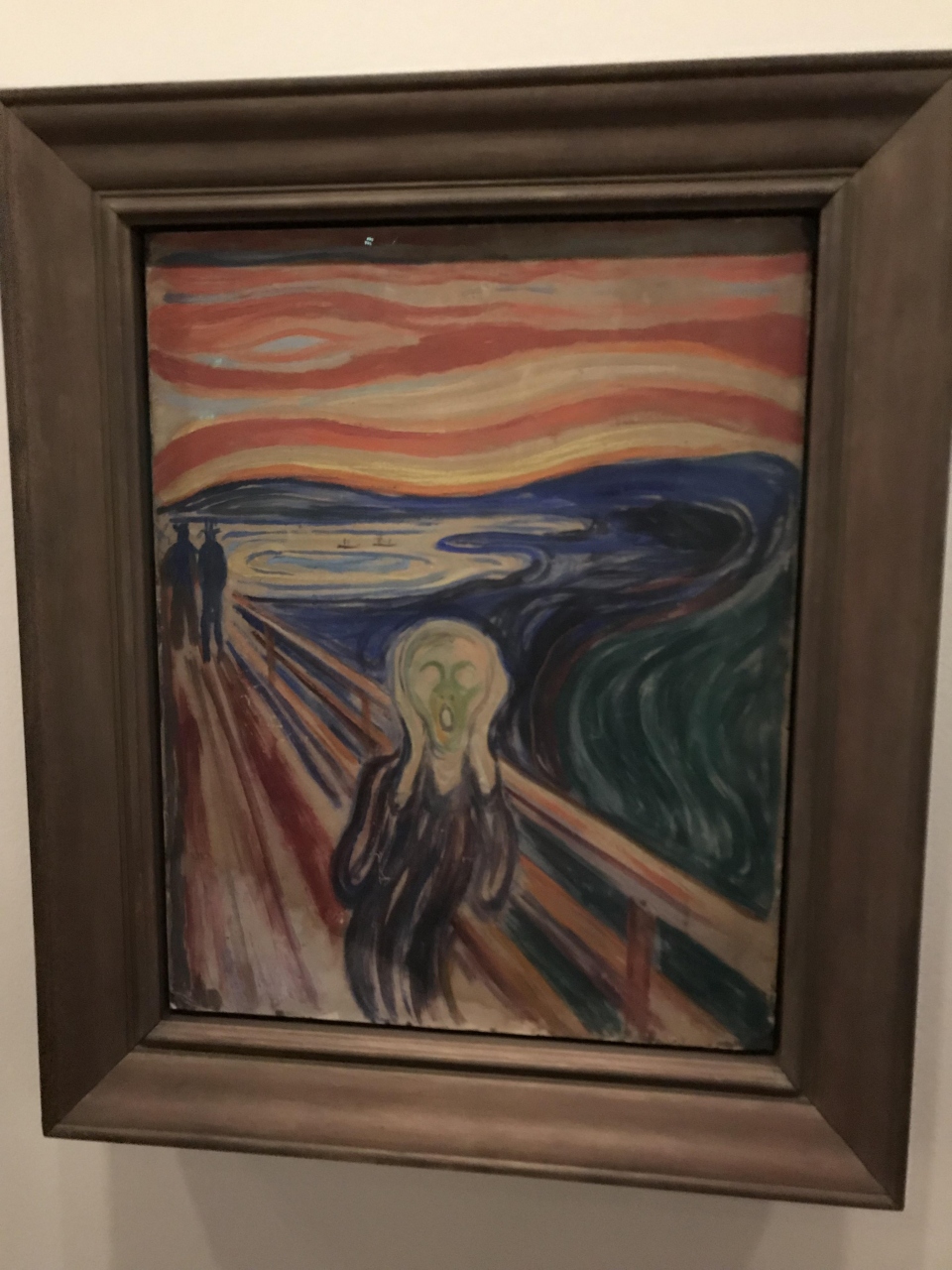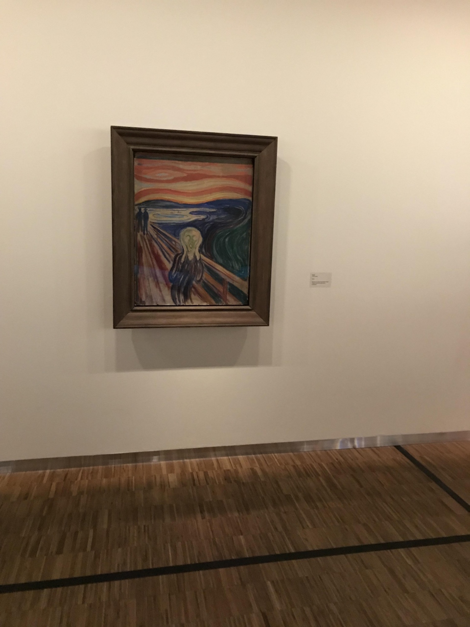 有名な「叫び」のテンペラ画バージョンが展示されています。開館時間の10時少し前に到着したところ、既にかなりの開館を待つ人の列が出来ていました。A4以上の大きさの手荷物は、ロッカーに預ける必要があります。また、入場の際は、機械によるセキュリティーチェックもありました。