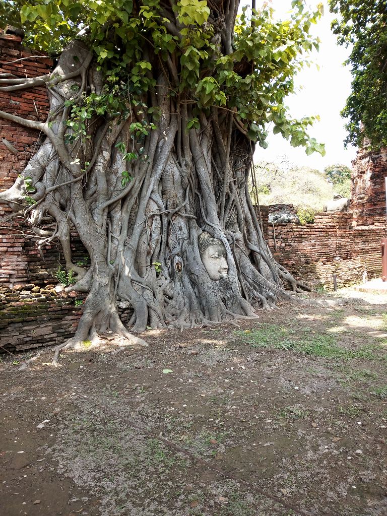 一番有名な木に埋もれた仏像は、たくさんの人でごった返していて写真撮影するのも大変なくらいでした。アユタヤ観光の1つの目玉だと思うので皆さん行くのでしょうがないですね。ソンテウをチャーターして行きました。