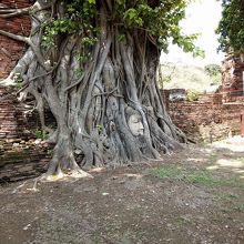 有名な木に埋もれる仏像