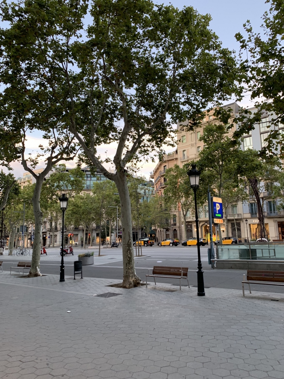 バルセロナ一の繁華街で、両サイドに高級ブランド店が多く立ち並んでいます。